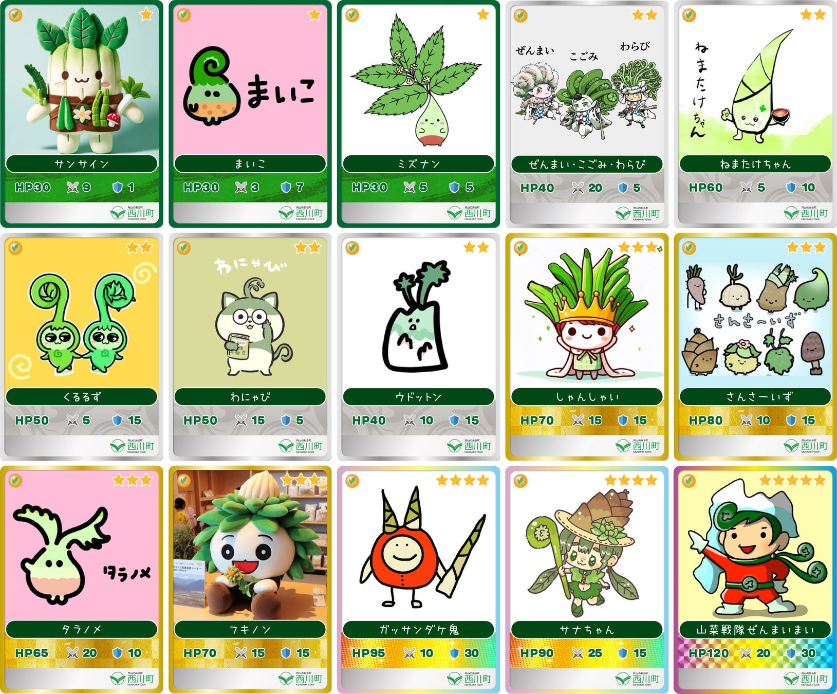 <山菜トレカNFTの採用キャラクターと作者一覧(全15種一覧)>