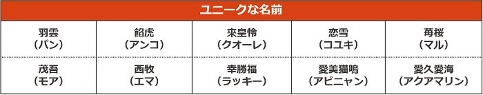 今年も個性的な「うちの子」の名前が多く見られました。特徴的な読み方や、可愛らしい読み方の名前がありました。