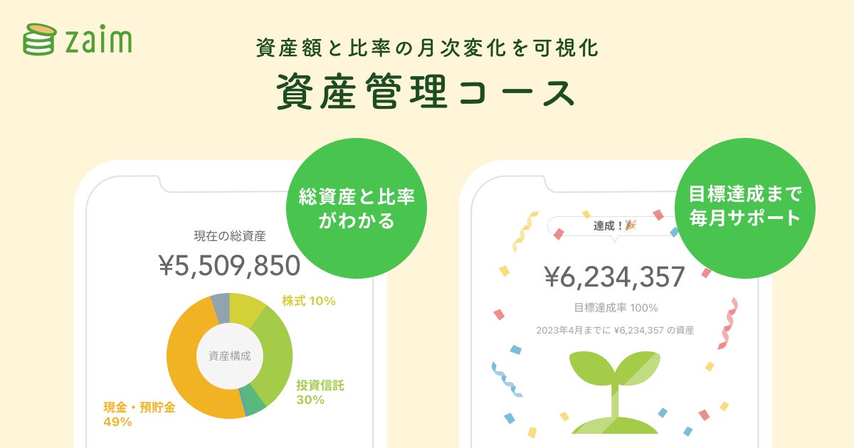 家計簿サービス「Zaim」有料会員向け「目的別コース」機能拡充、資産額と構成比率の月次変化を可視化「資産管理コース」公開