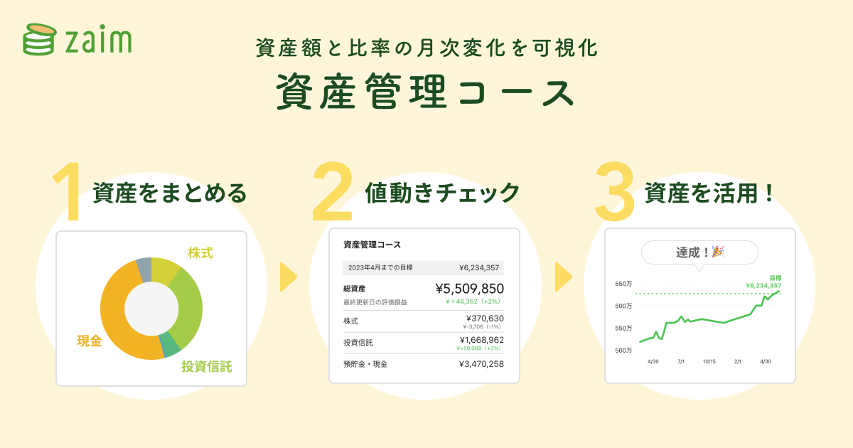 現在政府が打ち出している「経済財政運営と改革の基本方針(骨太の方針)」にて「資産所得倍増プラン」が掲げられており、今後ますます投資に関する関心が高まると見られます。それを受け Zaim では利用者一人ひとりが自分自身の資産状況を定期的に確認し、最適な投資改善プランに取り組んでいただける「資産管理コース」機能を追加公開しました。