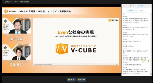 「VCP(IR用バージョン)」は、5月15日に実施した、ブイキューブの2024年12月期第1四半期オンライン決算説明会(個人投資家向け)に導入されています。