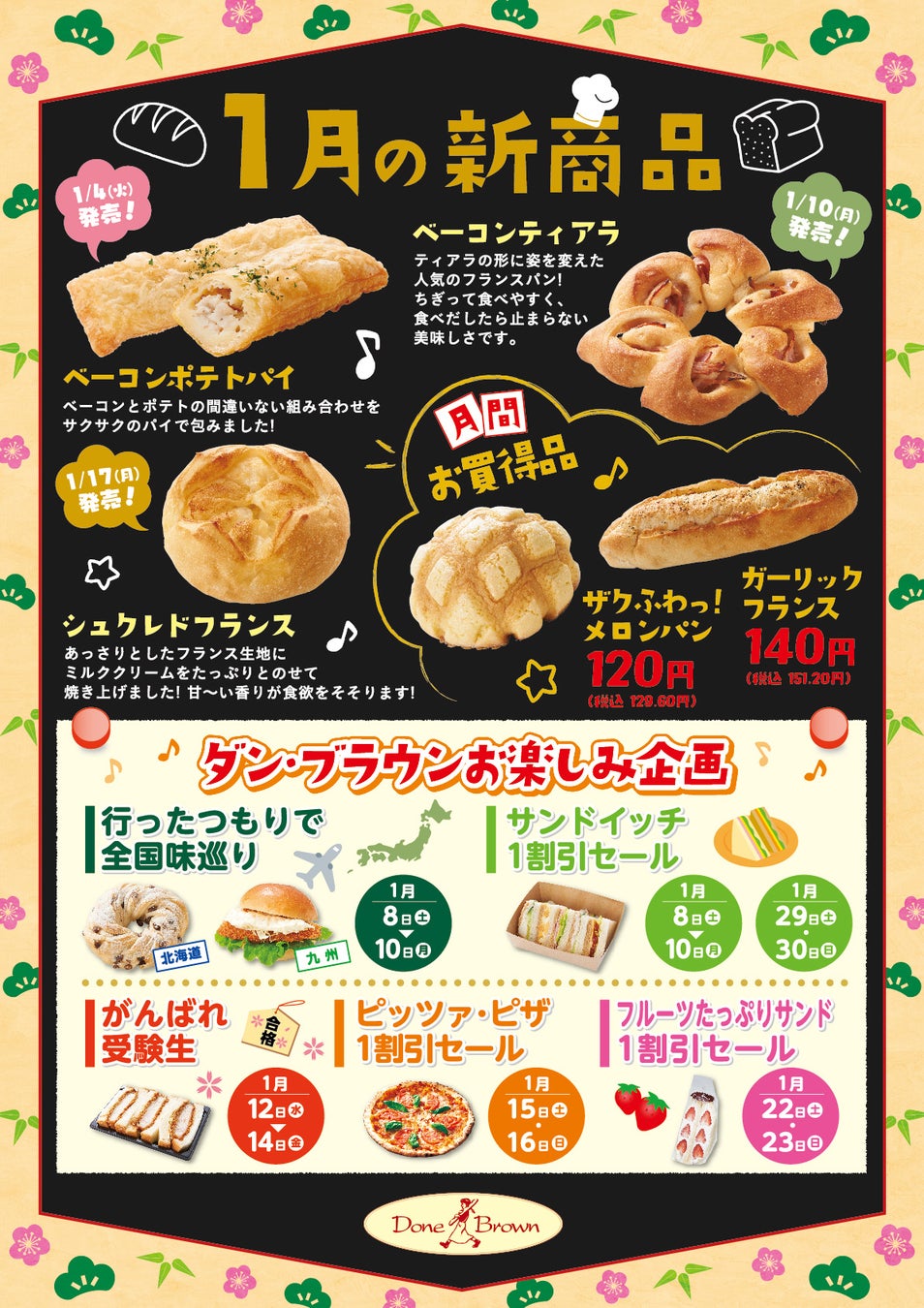 焼きたてパンの店「ダン・ブラウン」では、1月4日(火)より、週ごとに新たな商品を発売いたします。お食事にはもちろん、冬のおやつにも最適な店内製造の焼きたてパンを、ぜひご賞味ください。