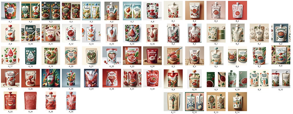 今回新たな試みとして、デザインの制作段階から生成AIを組み入れ、主にパッケージデザインの方向性検討に活用をいたしました。