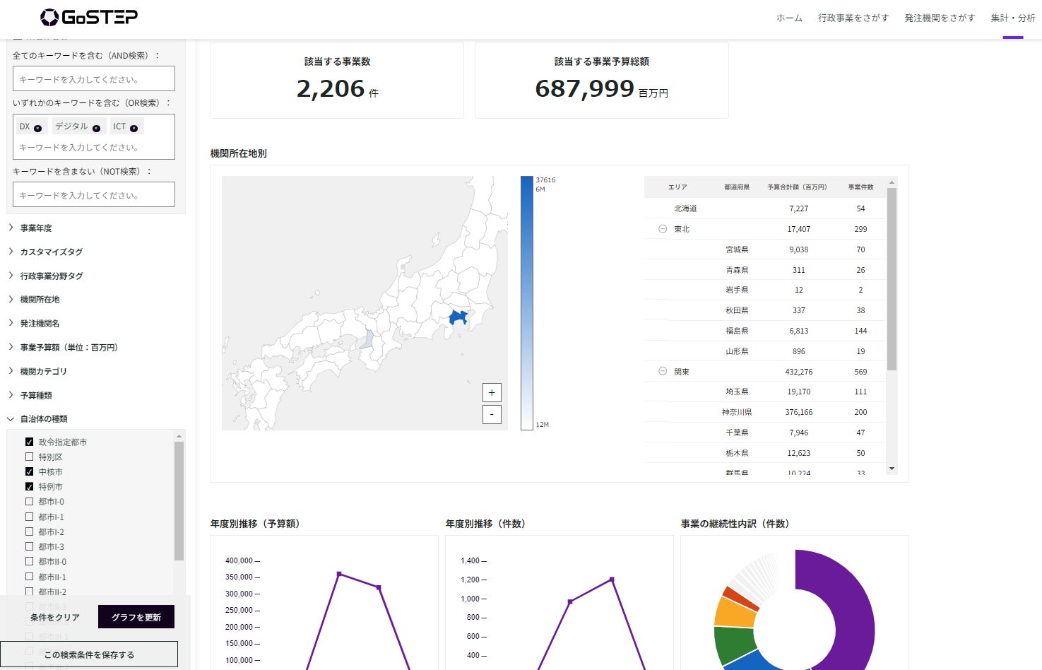 公共機関の予算情報などを集約するデータプラットフォーム「GoSTEP」、新たに「集計・分析機能」を追加し、より的確な戦略・方針の策定が可能に!