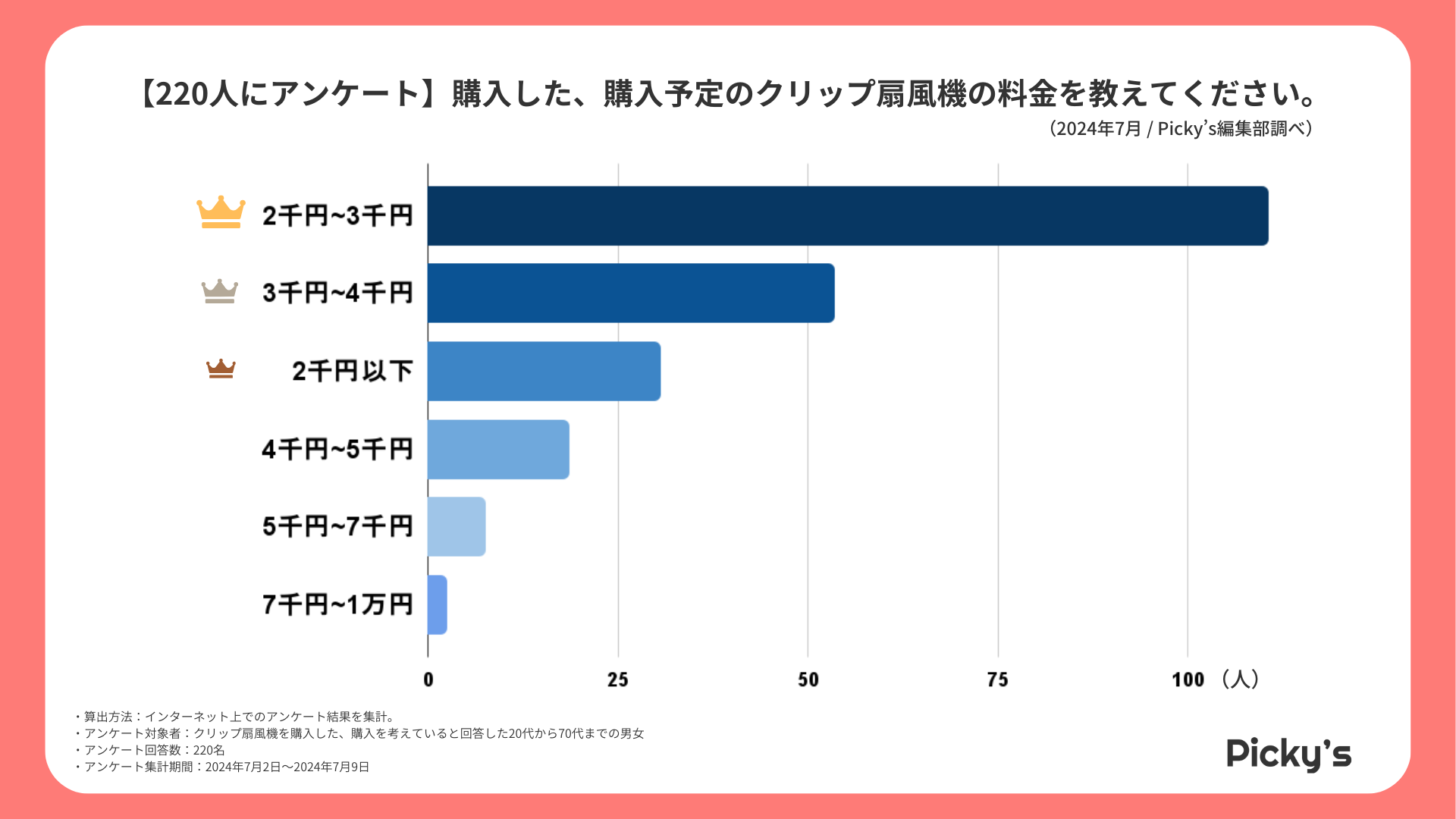 半分の方が2千円~3千円のクリップ扇風機を選んでいることが分かります。