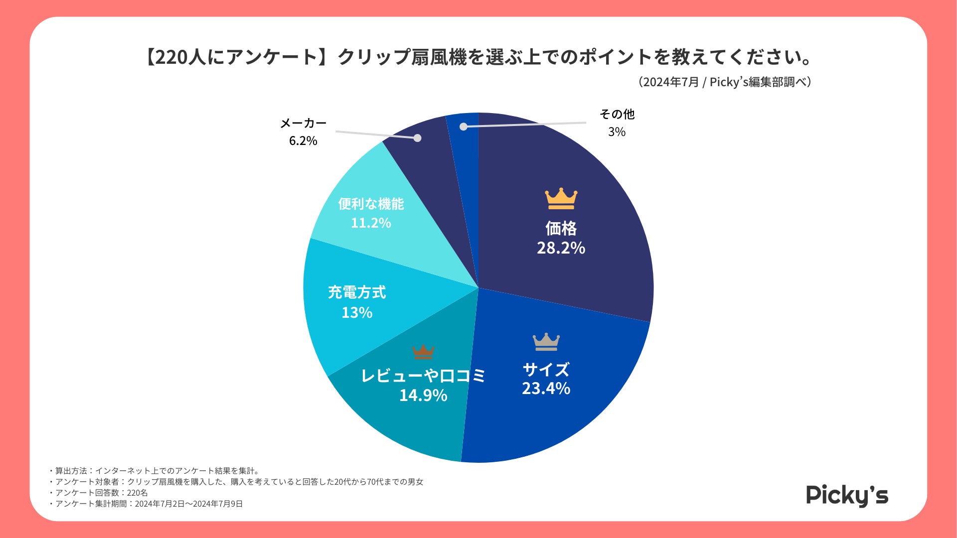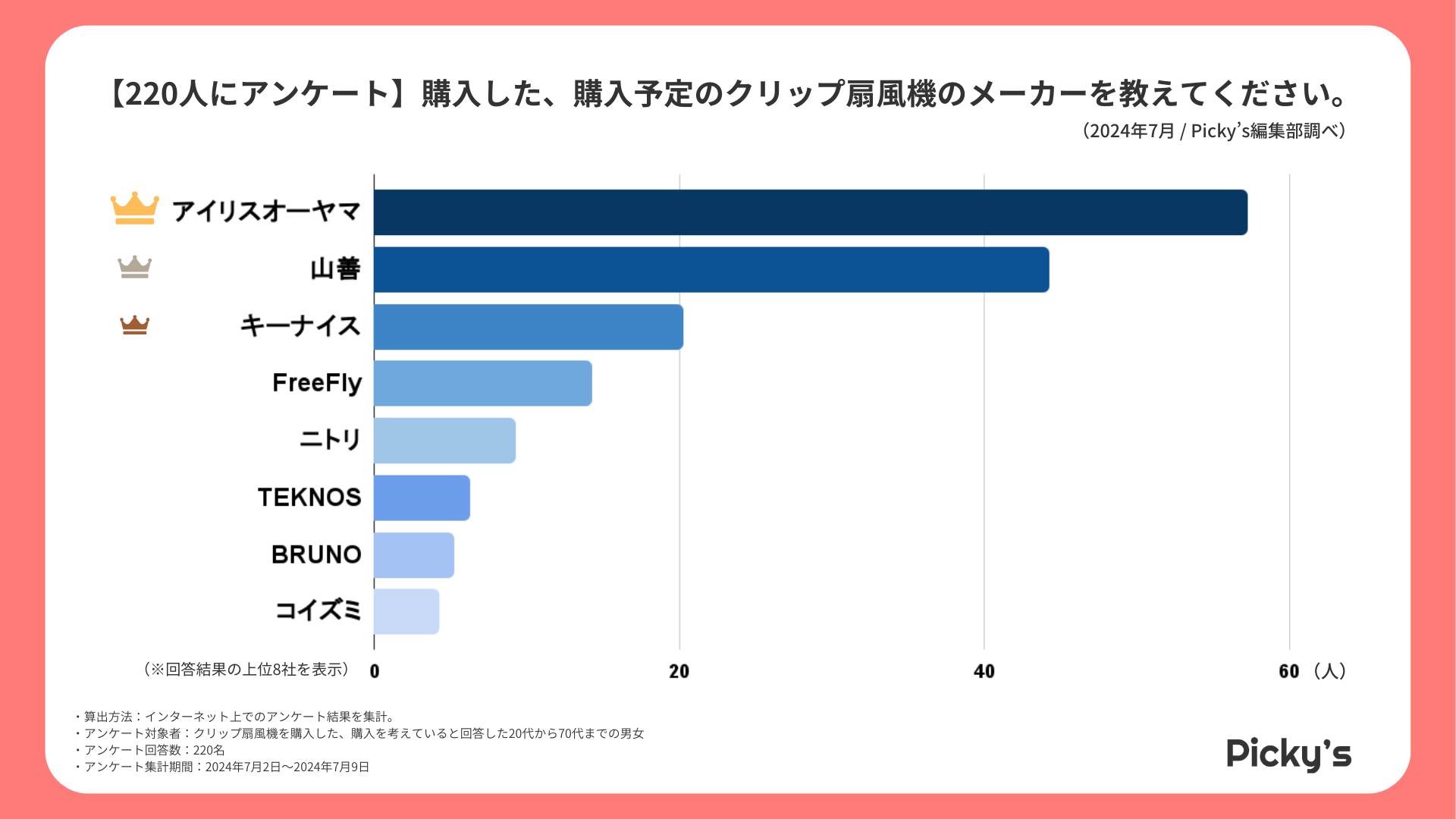 「Picky’s」は、インターネットショッピングにおいて、購入前に試せない・選ぶべきものがわからないという課題の解決を目標に、あらゆる商品のおすすめランキングや検証レビューを紹介するサイトです。このたびPicky’s(https://rentry.jp/)では、夏需要に先駆けて、クリップ扇風機についてインターネット上でアンケート調査を行いましたので発表いたします。