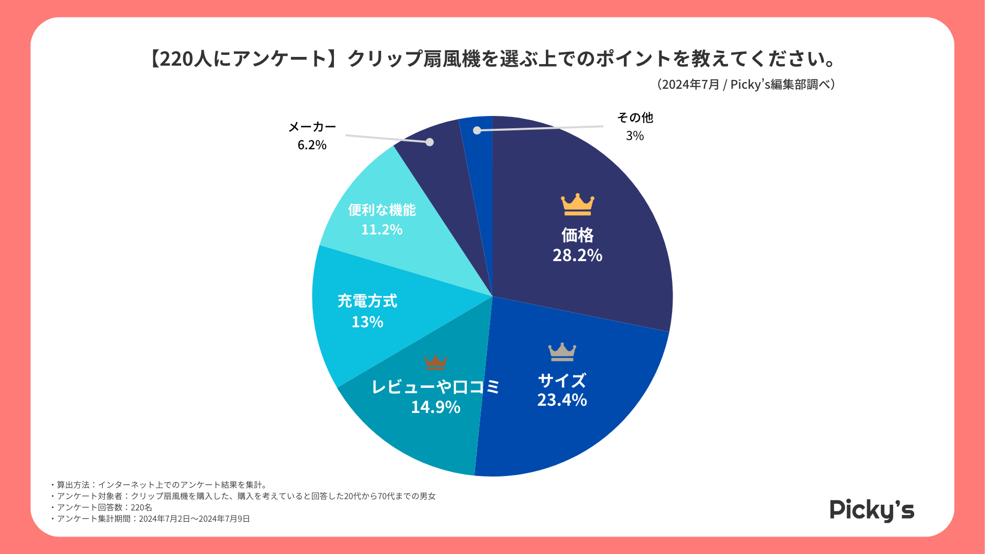 クリップ扇風機を選ぶポイントとして、特に多かった回答は「価格」でした。