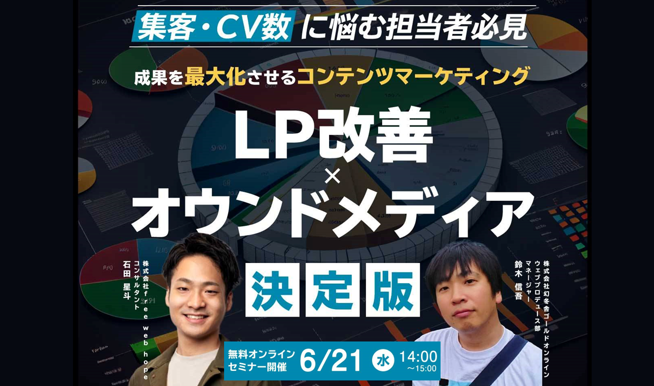 無料セミナー「【成果を最大化させるコンテンツマーケティング】LP改善×オウンドメディア決定版セミナー」6月21日(水)日開催