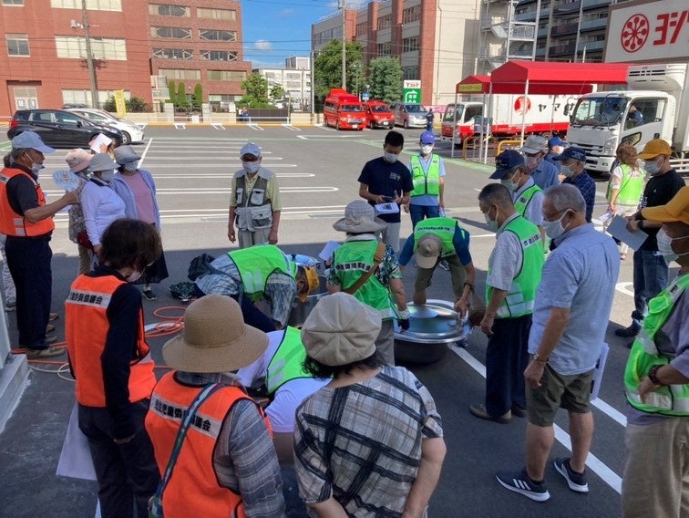万が一災害が発生した場合、速やかに災害支援に努められるよう、地域や企業と協力し、災害対応型ランドリーを活用した合同防災訓練を実施しております。