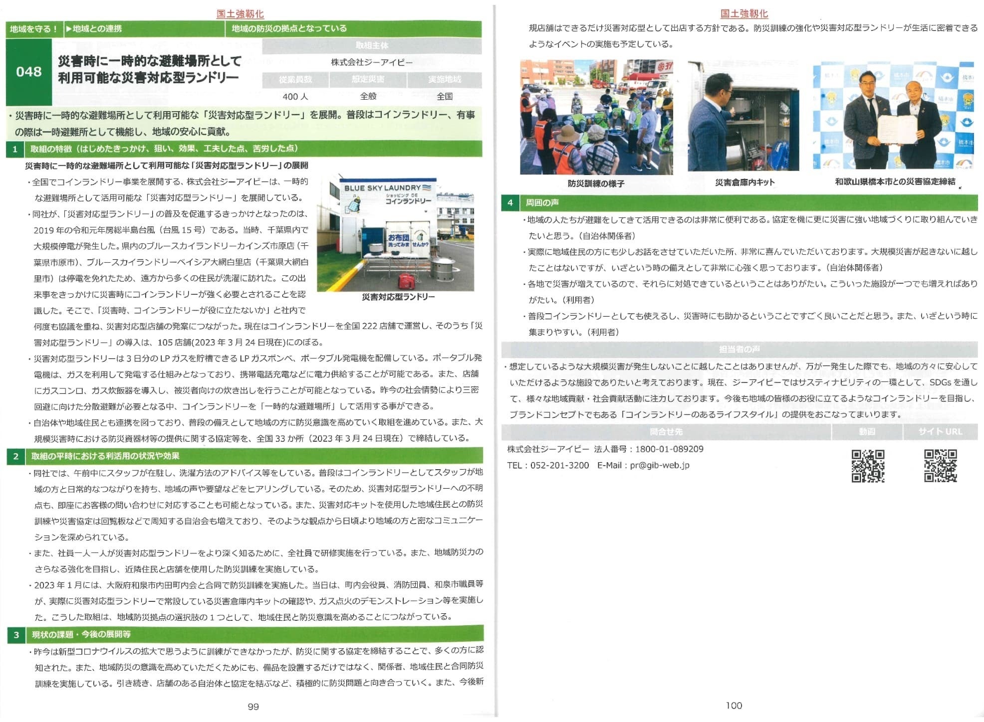 この度、国土強靭化において先導的な取り組みを行うプロジェクトをまとめた「国土強靱化 民間の取組事例集」に株式会社ジーアイビーが展開する「災害対応型ランドリー」が掲載されました。