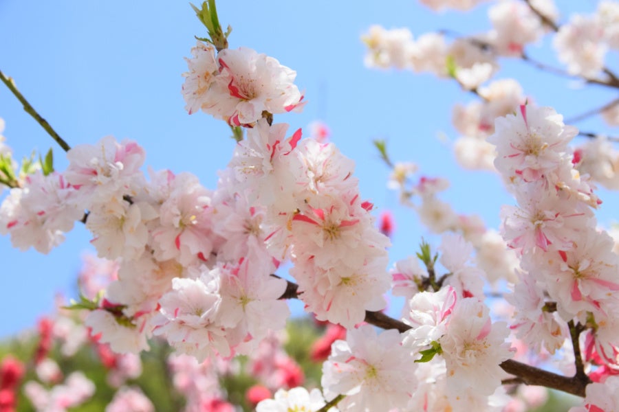 花桃の花は、桜や梅よりも大きく、花びらが幾重にも重なっているので、より華やかで優美な印象の花です。