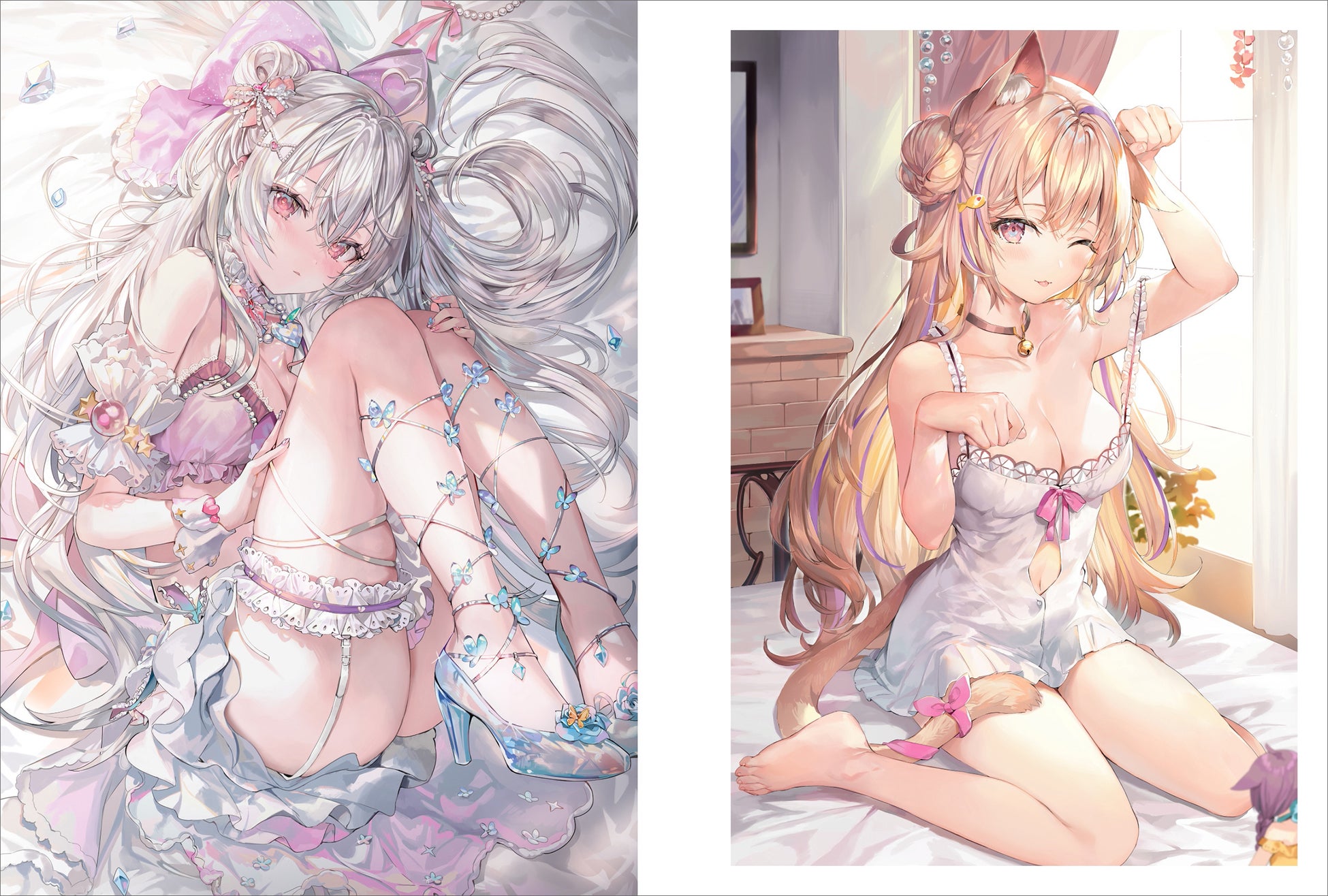 『時々ボソッとロシア語でデレる隣のアーリャさん』(『ロシデレ』)やVtuber『博衣こより』『ペトラ・グリン』『五十嵐梨花』キャラクターデザインなど、人気商業作品も多数収録。本書のための描き下ろしカバーイラストやオリジナル作品、そして貴重なアナログの線画作品を含め2020年以降の作品を200点以上掲載しています。