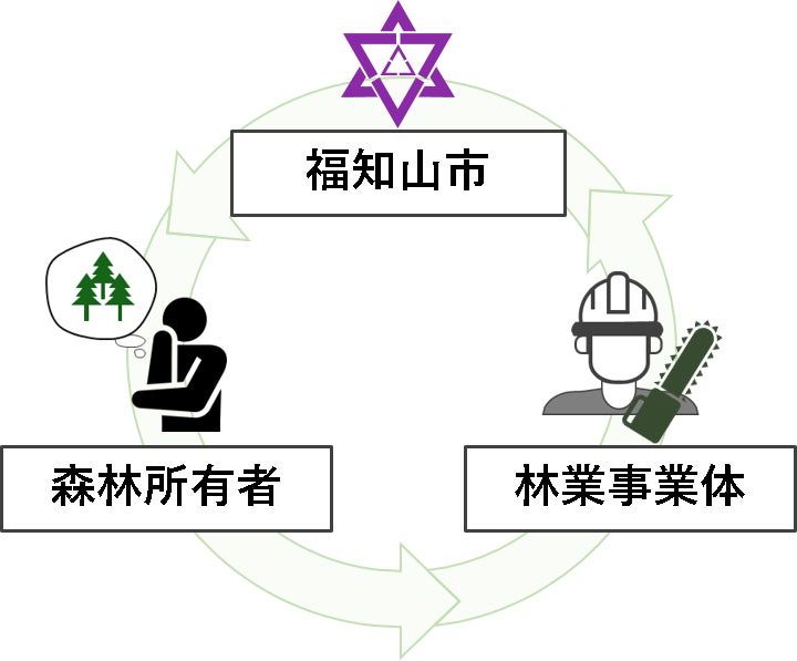 このように、森林整備の実績とノウハウを有する林業事業体と協定を締結し、市が『自身では管理ができない』という意向を持つ所有者の森林をまとめ、事業体に情報共有・斡旋する仕組みを整えるとともに、主伐・再造林と一体的に森林整備を実施できるエリアを森林経営計画(※)としてまとめ、面的にまとまりをもった効果的・効率的な森林整備を行っていくことで、木材の循環利用の実現、手入れ不足の人工林の解消と森林の有する多面的機能の向上、森林整備のスピードアップ、森林所有者の負担・不安軽減など、現在の森林・林業を取り巻く様々な課題の解決に繋げます。