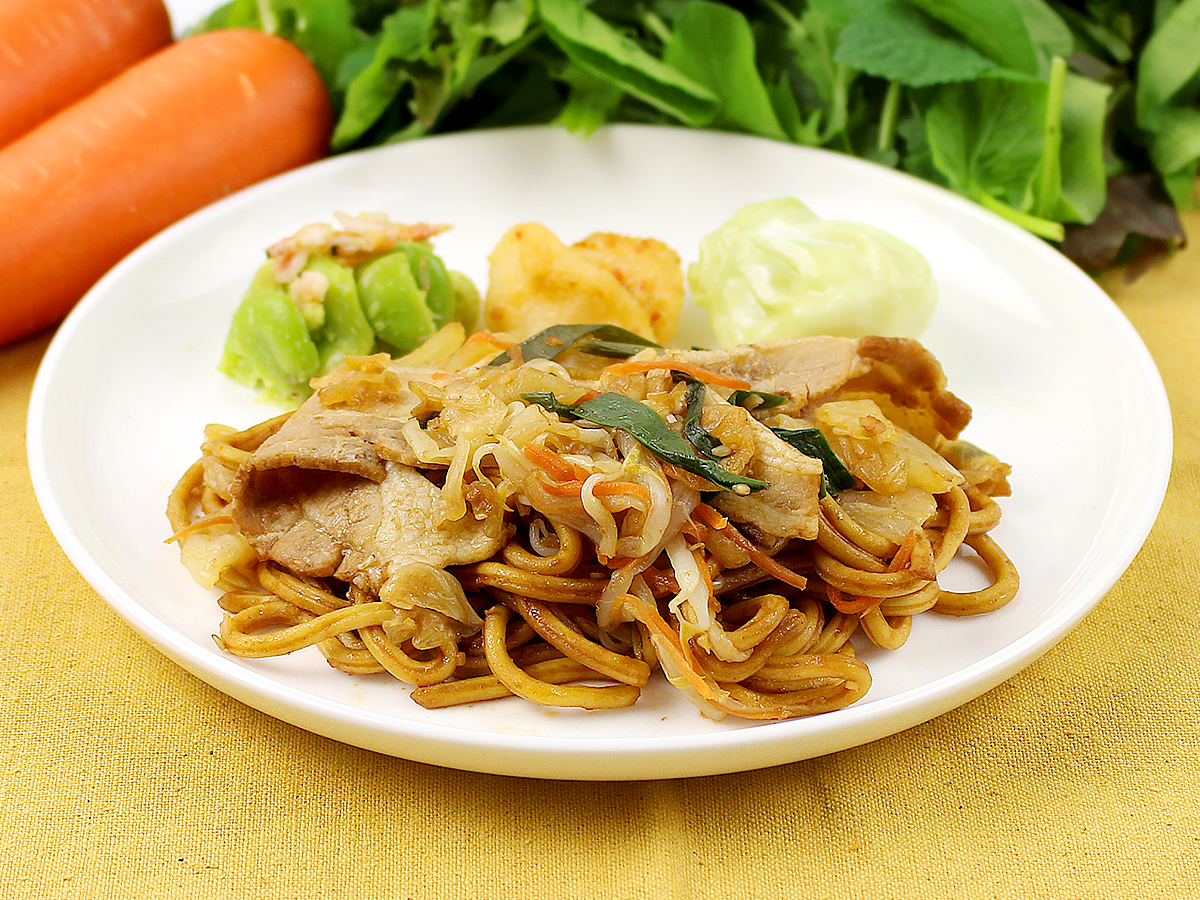 副菜は、ツナ入りのしろ菜の黒胡椒あえ、ザーサイの入った大根サラダ、枝豆とオクラの辛味あえです。