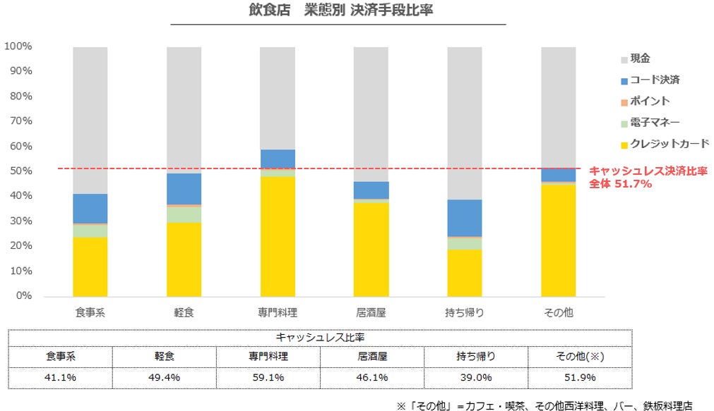 全国のキャッシュレス決済比率は51.7%と前月から1.4ptの増加