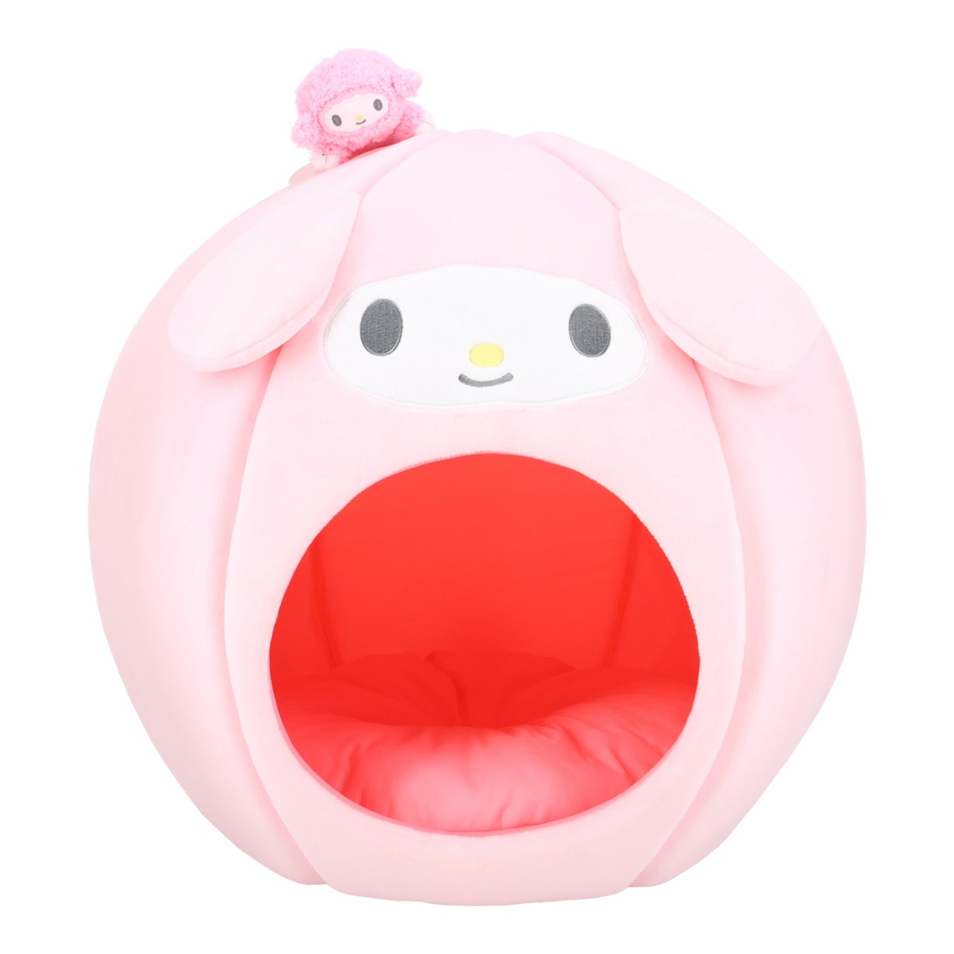 サンリオキャラクターズのお顔をかたどった、SNS映えにもぴったりな「ドーム型ペットハウス」。取り外し・⼿洗い可能なふわふわクッションと、咥えると⾳が鳴るぬいぐるみのおもちゃ付き♪