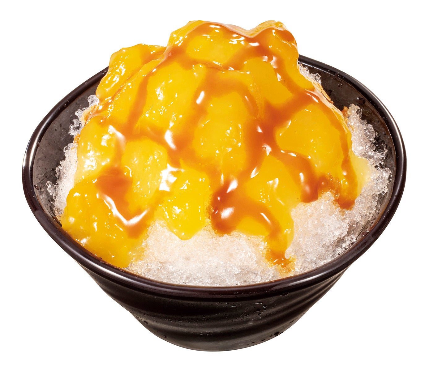 果肉感のあるとろ~りとしたマンゴーソースを使用したかき氷の中に、ファーストキッチン自慢のソフトクリームとキャラメルソースを入れました。甘味処のようなかき氷が、ファストフード店で気軽に楽しめます。