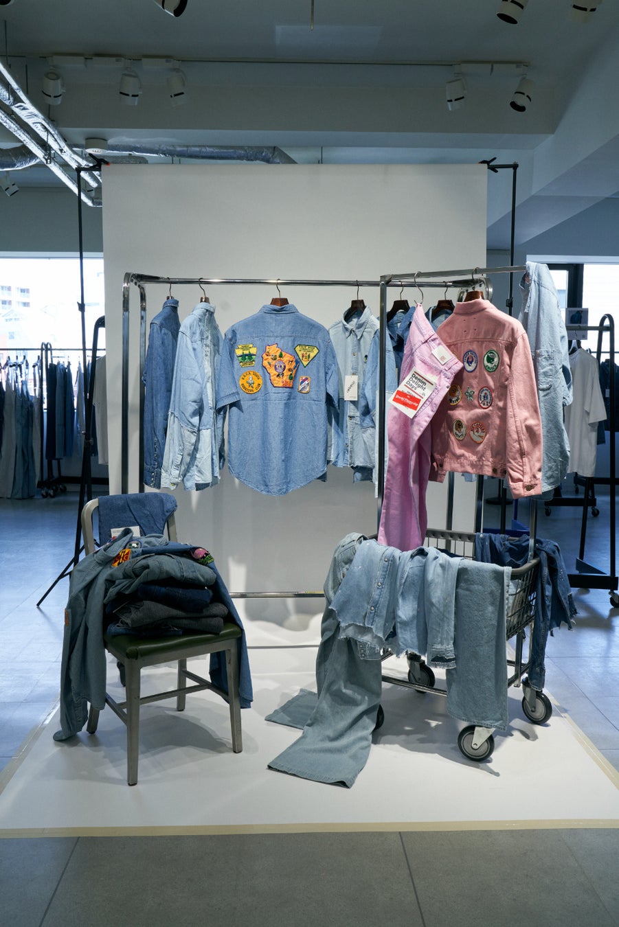 ブランドごとに、ベーシック、メンズライク、凝ったデザイン、特殊加工など幅広いテイストのデニムが並び、「JOHNBULL」がデニムと真摯に向き合ってきた72年間を感じられる空間。