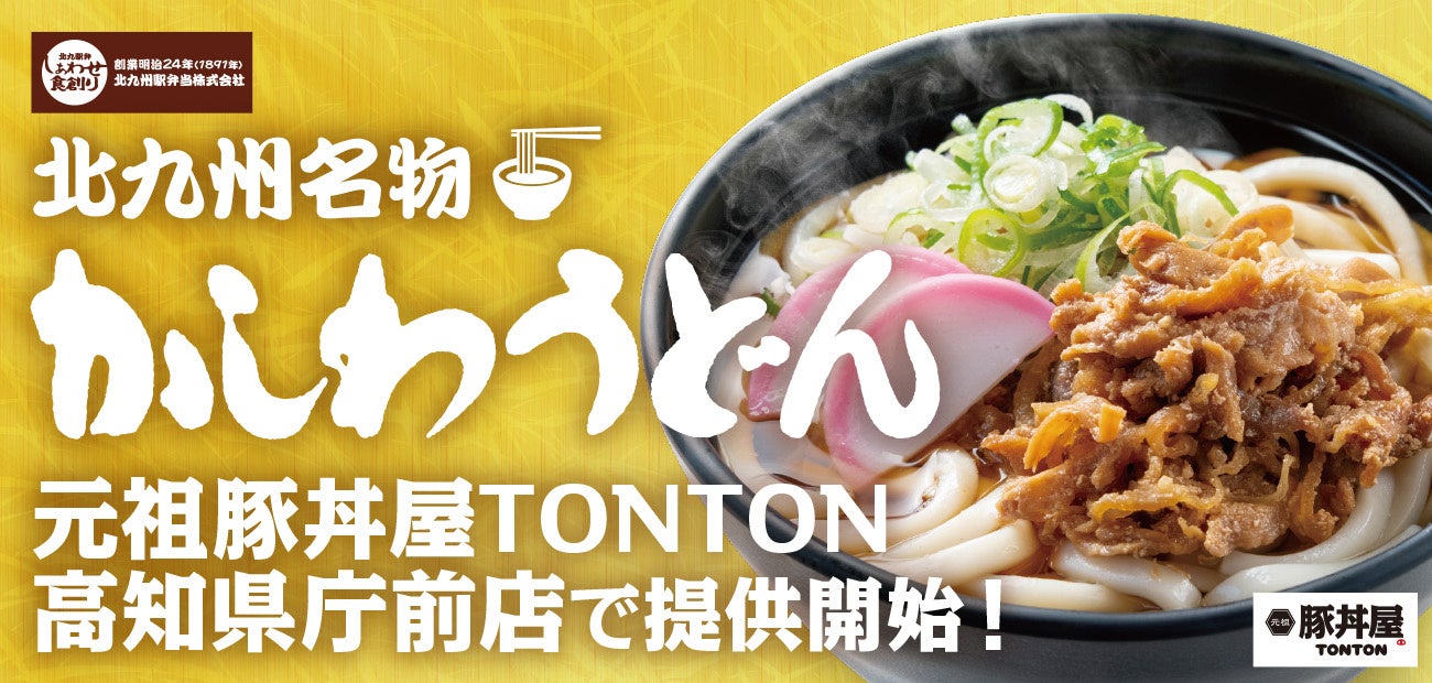 ワンズトライン株式会社(本社:大阪市北区芝田2丁目3番16号、代表取締役:山内仁)が運営する、ボリュームたっぷりの北海道・帯広豚丼が人気の「元祖豚丼屋TONTON 高知県庁前店」(住所:高知県高知市升形1-22、TEL:088-879-9438)で、高知県初上陸となる、北九州ご当地グルメ「かしわうどん」の提供を5月20日(月)より開始いたします。