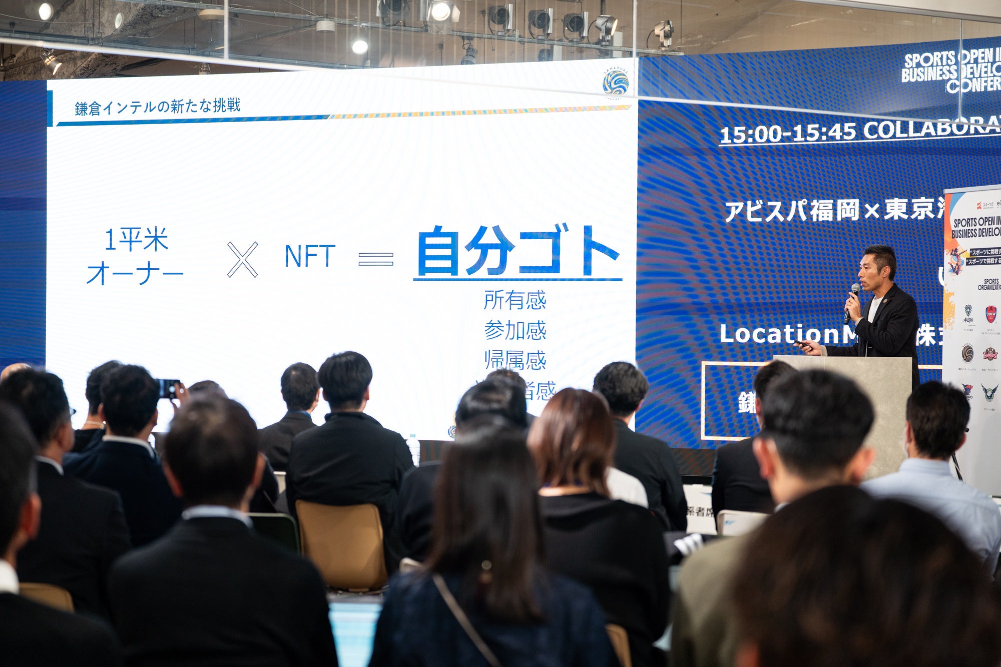当日はオーナー室室長 勝碕俊行が登壇し、「鎌倉スタジアムNFTプロジェクト」に関する報告を実施。スポーツ庁長官の河合純一氏をはじめ、全国から400名以上(スポーツ共創プレイヤー・来場者)が一堂に集結するなか、スポーツを起点とした「スポーツ×他産業」による新たな価値創造に挑戦する取り組みとしてプレゼンを行いました。