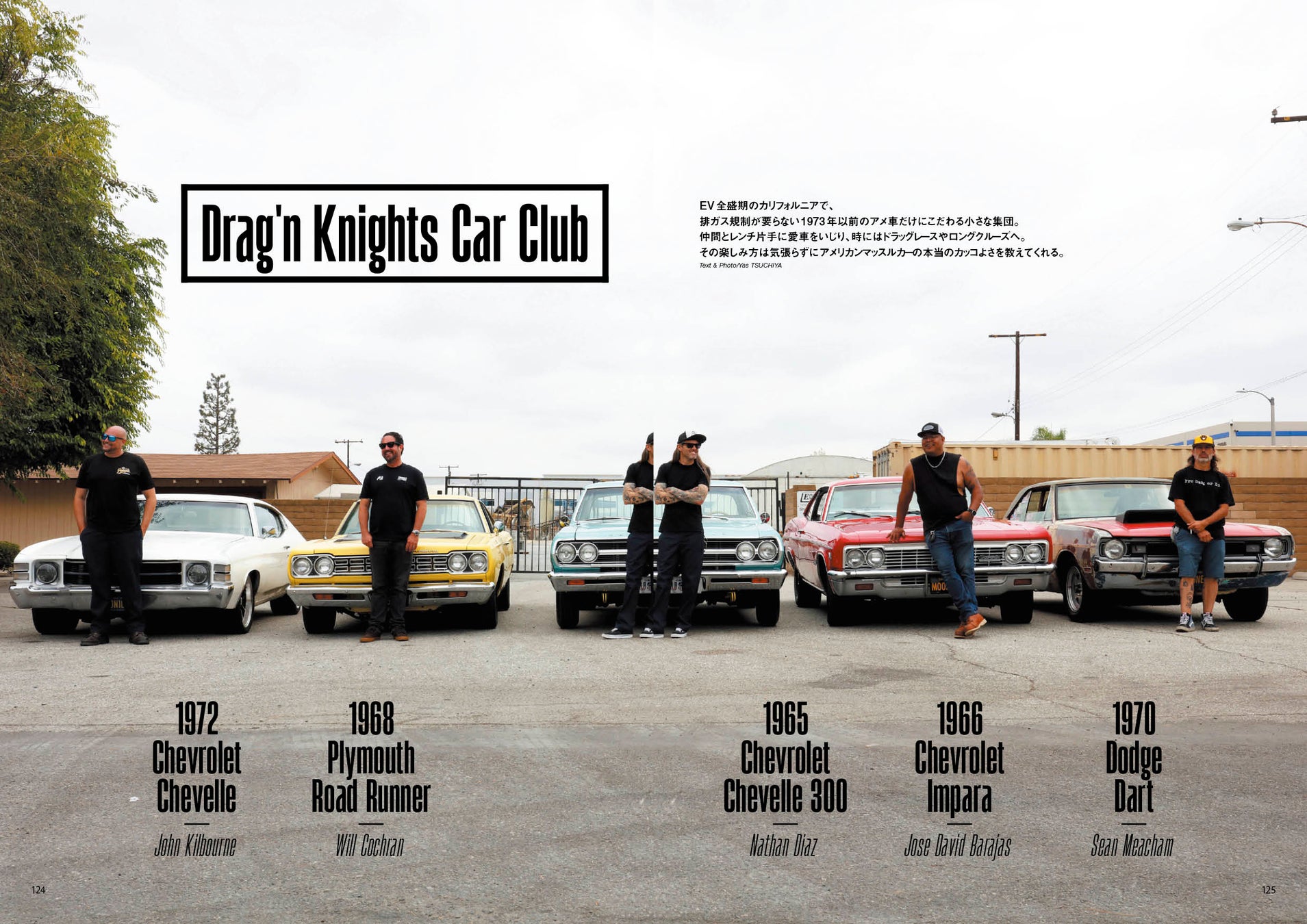 EV全盛期のカリフォルニアで、排ガス規制が要らない1973 年以前のアメ車だけにこだわる小さな集団「Drag’n Knights Car Club」を取材仲間とレンチ片手に愛車をいじり、時にはドラッグレースやロングクルーズへ。その楽しみ方は気張らずにアメリカンマッスルカーの本当のカッコよさを教えてくれます。