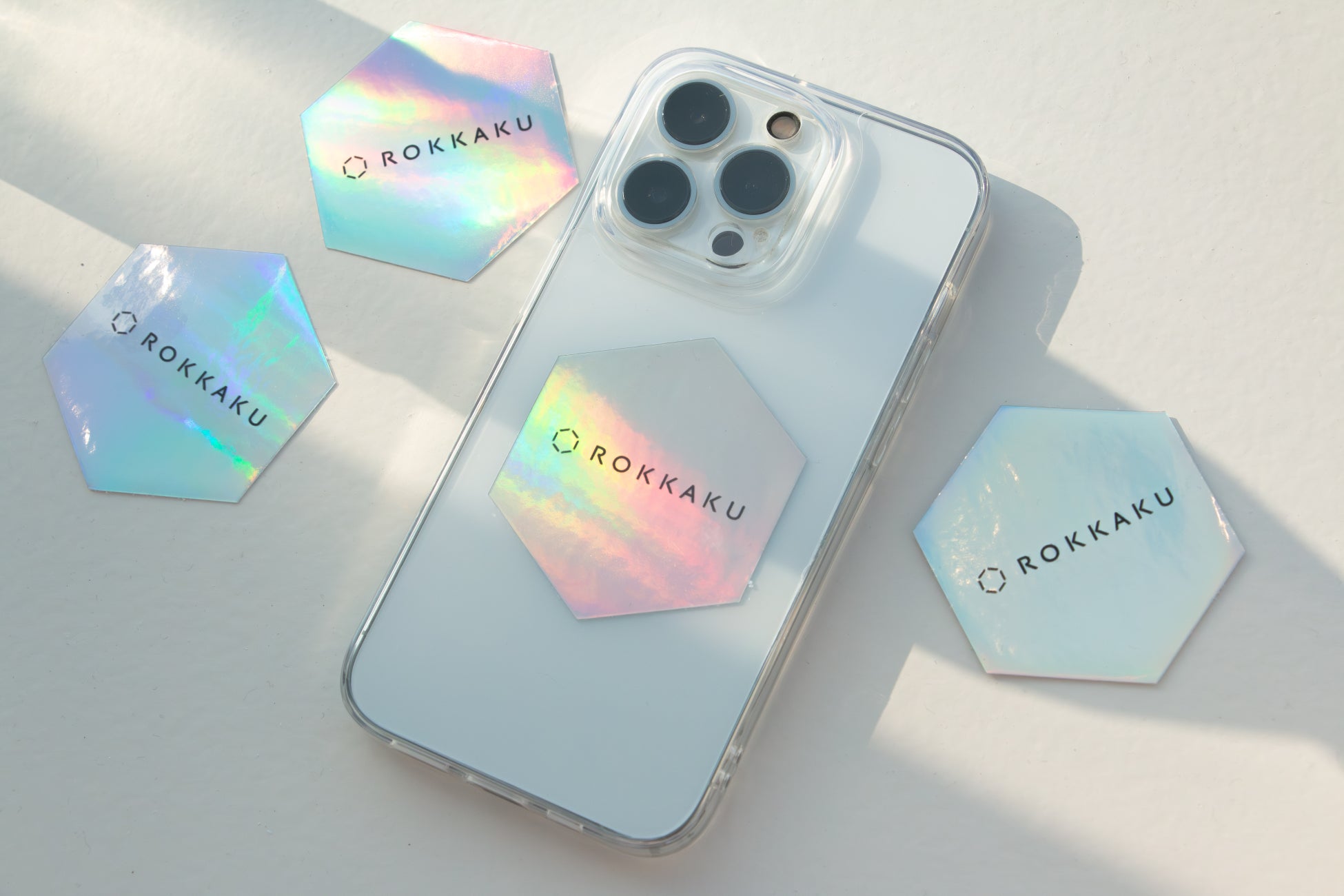 ロゴステッカーは、光の角度によって輝きが変わるレインボー加工が施されており、ノートやスマートフォン、PCにも映えるシンプルで上質な仕上がりです。購入いただいた方全員にお届けする限定のノベルティとなっております。