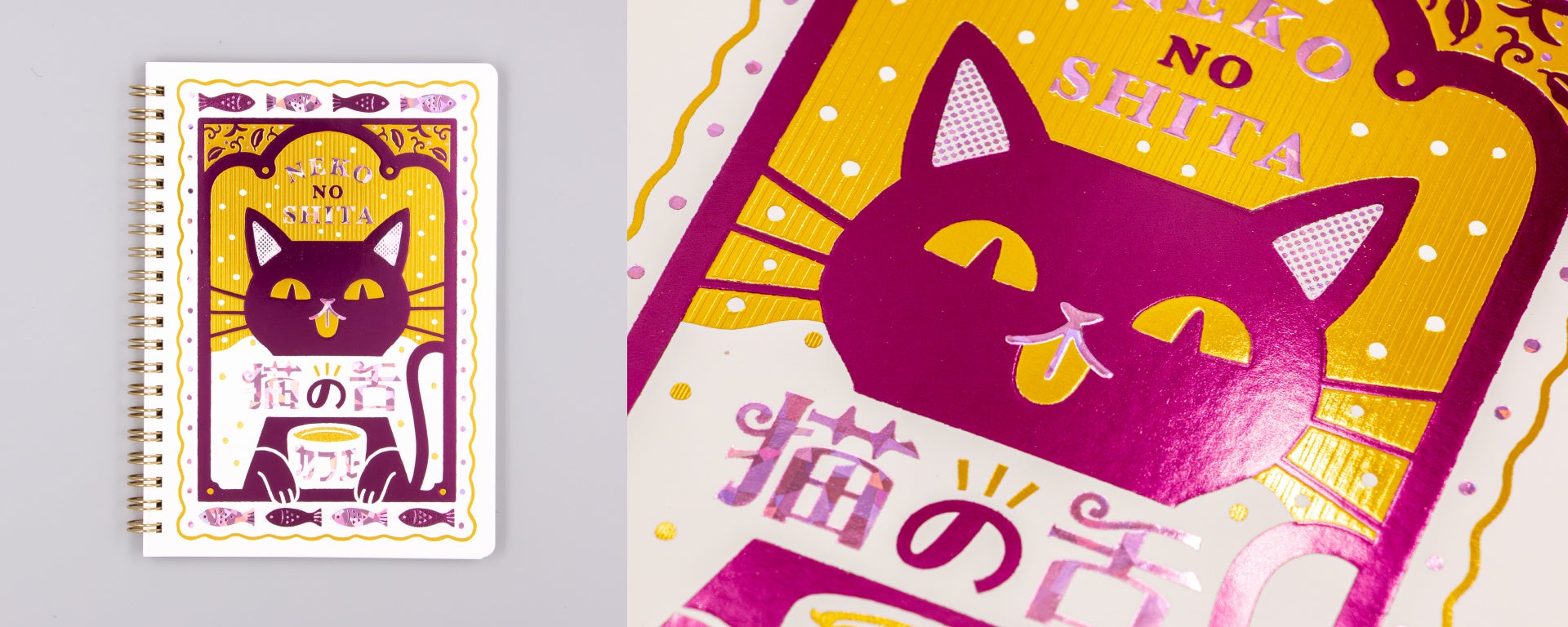 箔できらめく猫のアートが、読書の時間をより特別なものにしてくれます。