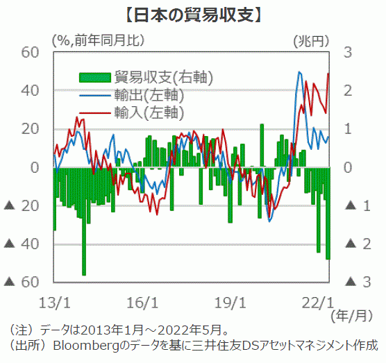三井住友DSアセットマネジメント株式会社(代表取締役社長 兼 CEO:猿田隆)は、経済イベントや市場動向に関するマーケットレポートを日々発行しております。このたび、マーケットレポート「バックグラウンドで円安に効く、日本の『貿易赤字』」を2022年6月24日に発行いたしましたので、お知らせいたします。