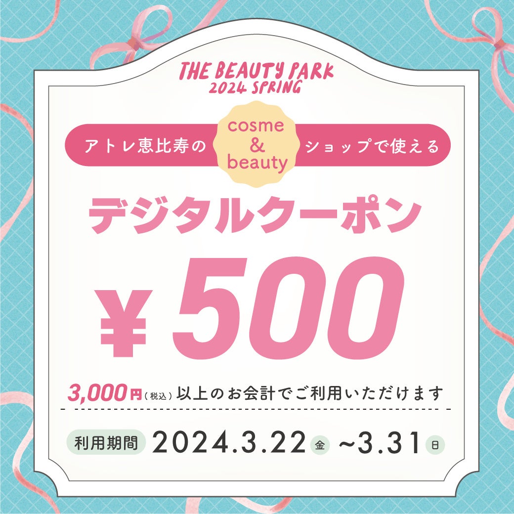 ショップイベントでサービスやタッチアップを受けていただいた方限定で、アトレ恵比寿のコスメビューティーショップで3,000円以上のお買物で使える500円デジタルクーポンをプレゼントします。
