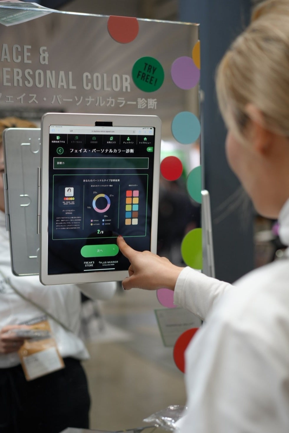 セレクトショップ「FREAK‘S STORE(フリークスストア)」などのアパレルブランドを展開する(株)デイトナ・インターナショナルの子会社、(株)Innovation Studio提供の+PLUS MIRROR(タブレット版)が本館4階フォンテーヌ広場に登場。タブレットで顔の撮影後、フェイスタイプとパーソナルカラーをAIが診断。それぞれのタイプに