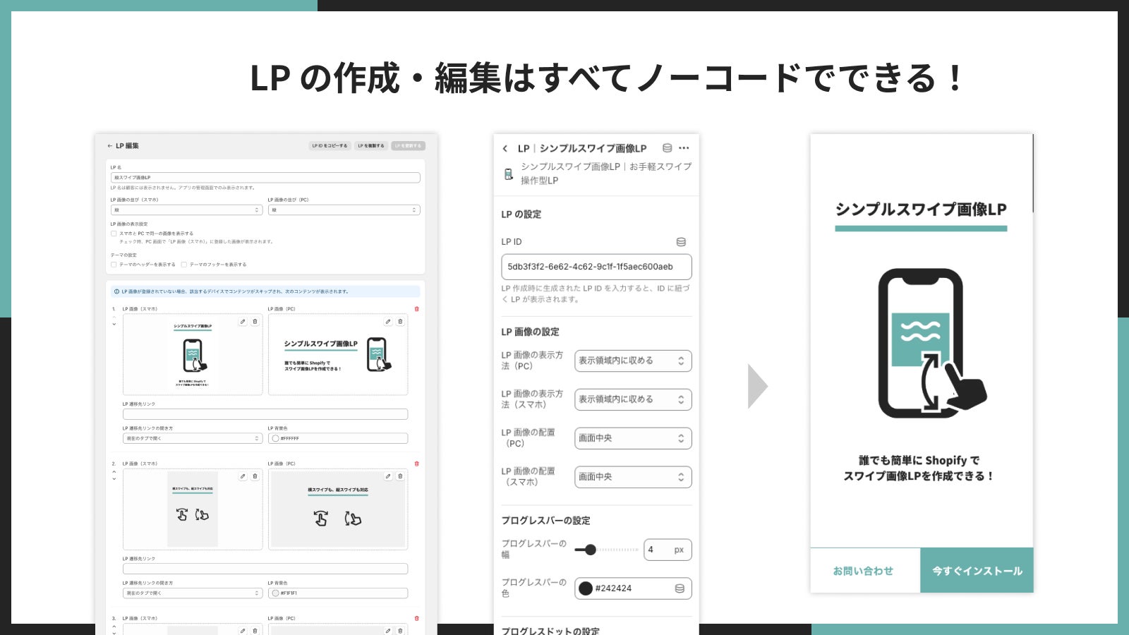 ■ スワイプ操作型LPの作成・編集はすべてノーコードでできる!