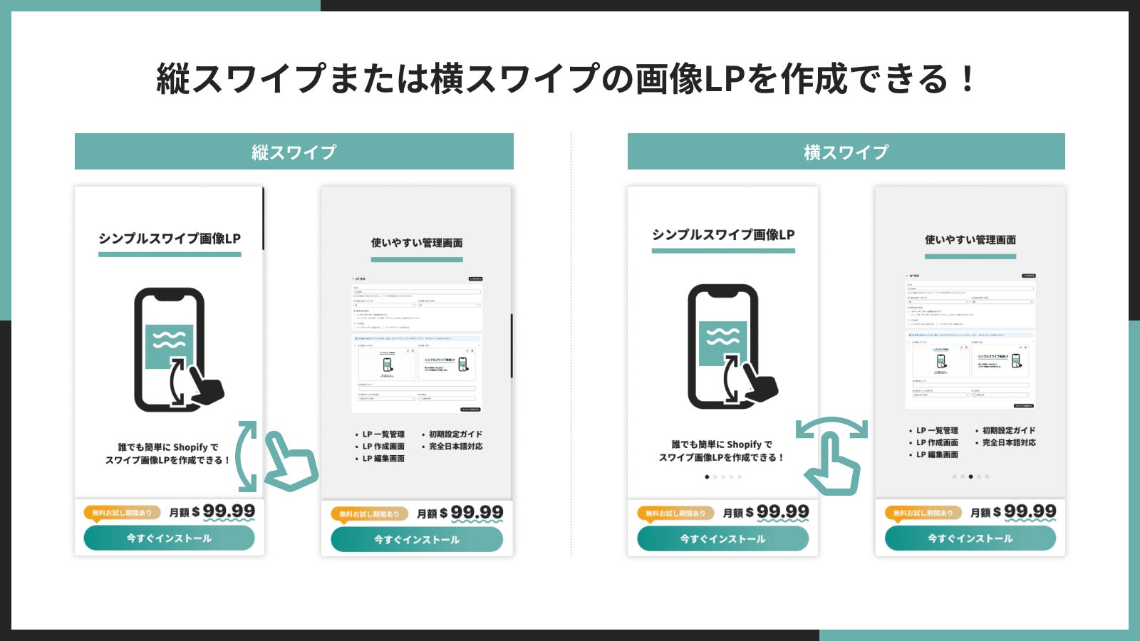 Shopifyでスワイプ操作型LPを実現できるノーコードアプリ「シンプルスワイプ画像LP|お手軽スワイプ操作型LP」をリリース