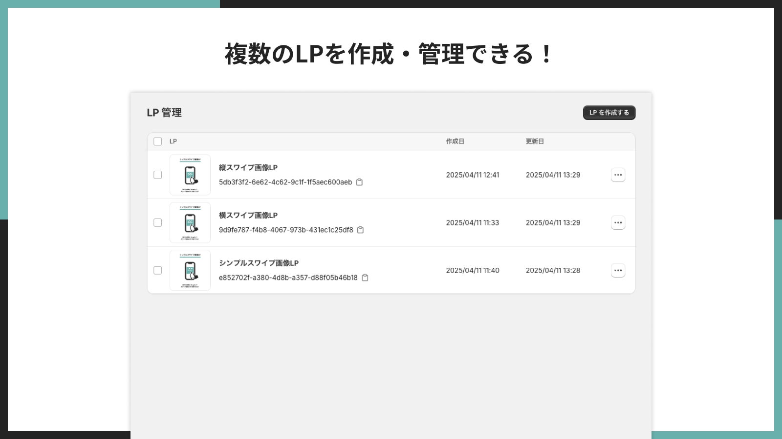 ■ 複数のスワイプ操作型LPを作成・管理できる!
