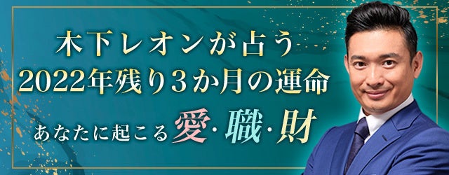 ※「2022年残り3か月の運命」をご鑑定頂くには、公式サイト「木下レオンの占い」(https://kinoshita-reon.jp)への会員登録が必要です。(月額330円)