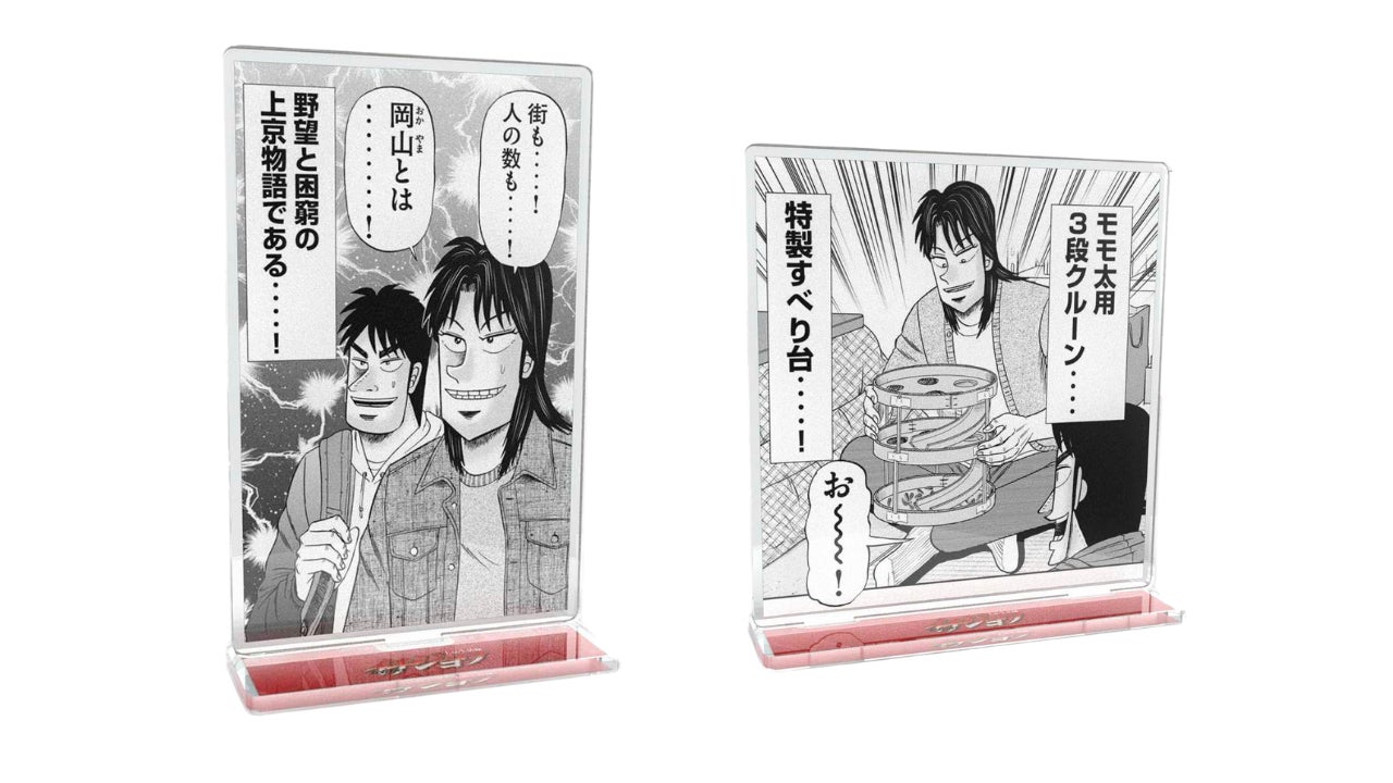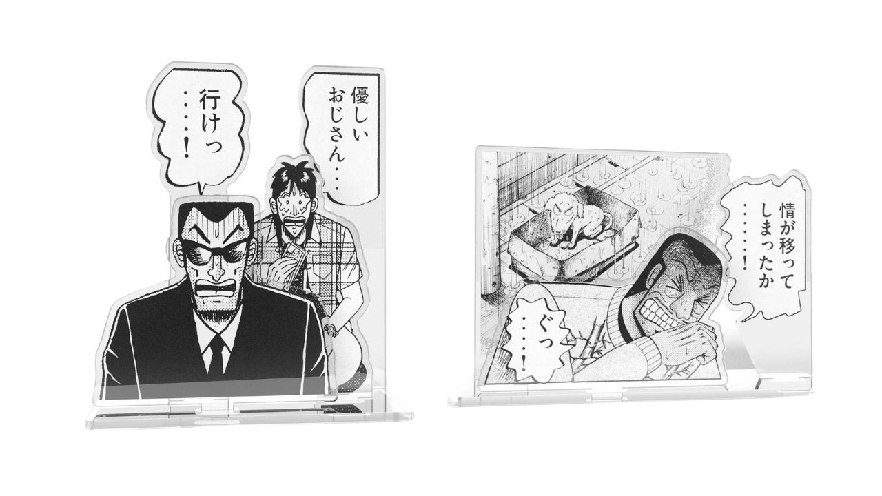 「カイジ」シリーズのスピンオフ3作品「中間管理録トネガワ」「1日外出録ハンチョウ」「上京生活録イチジョウ」からもアクリルスタンドセットが登場。数ある名シーンから、飾りたくなるあの場面をピックアップしました。
