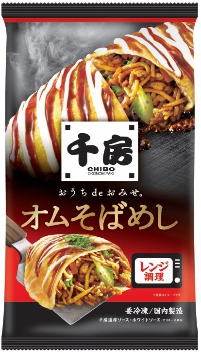 刻んだ中太麺と炊き立てご飯を千房特製ソースで絡めて大型の直火窯で炒め上げたソース香るそばめしを、焼き立てふんわりふわふわの卵で丁寧に包み込み、美味しさそのまま急速冷凍致しました!