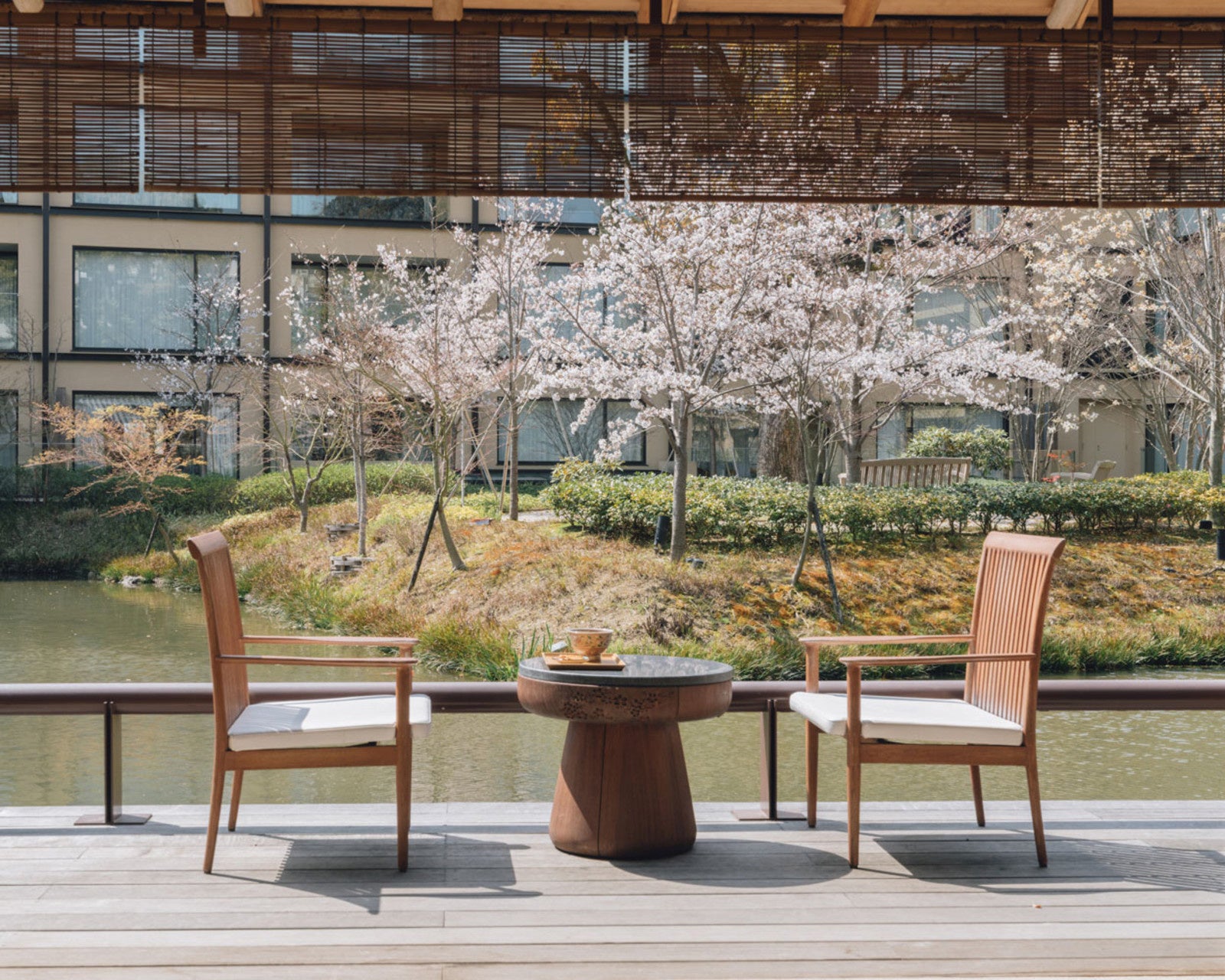 また、モダンで洗練された炭火焼のグリル料理を提供するレストラン「エンバ・キョウト・チョップハウス」、ホテル特製のアフタヌーンティーやスイーツ、淹れたてのハンドドリップコーヒー、夜はオリジナルカクテルが味わえる「ザ・ラウンジ&バー」を展開しております。庭園の対岸にある数寄屋造りの茶室ラウンジ「楓樹」では、日中は抹茶などを使用したスイーツ、夕暮れ時からはライトアップされた庭園を目前に日本酒やシャンパンをお楽しみいただけます。
