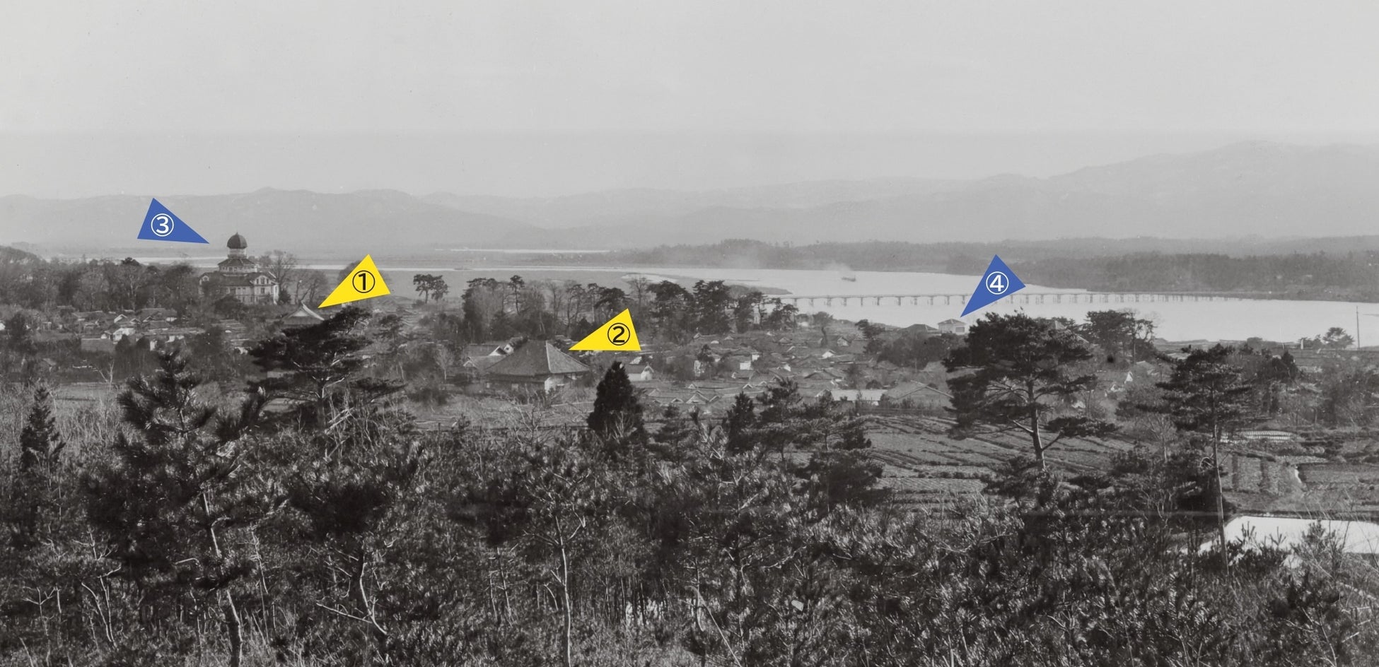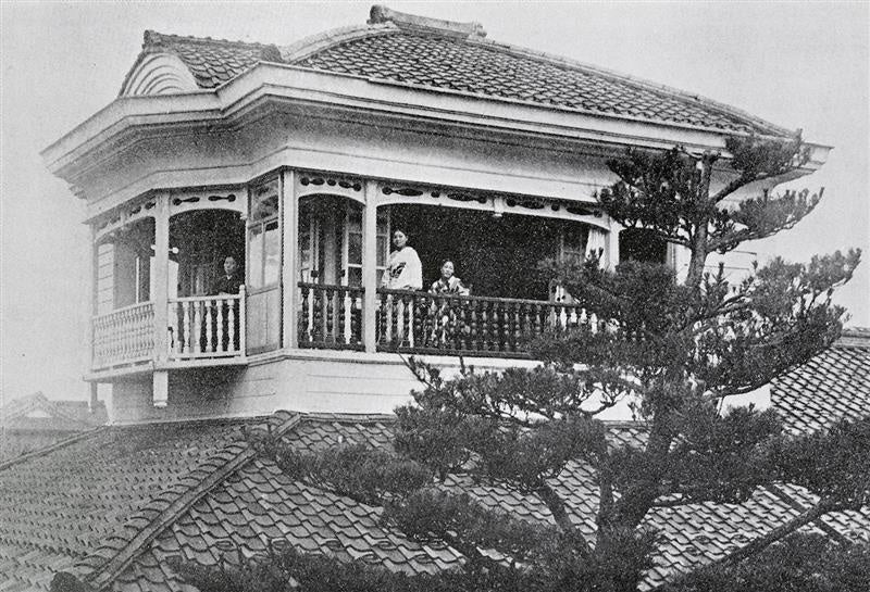 福井県坂井市の龍翔博物館で、秋の特別展「文明開化の華~龍翔小学校とエッセル堤~」展が10月下旬から開催中。その会場の中で、それまで地元の三国でもほとんど知られていない明治期の“もうひとつの擬洋風建築”の展示が注目を浴びている。明治前期に建てられた「龍翔小学校」は、五層八角形のユニークなデザインで、地元では誰もが知っている、当時の三国の文明開化のシンボル。現在の龍翔博物館の外観のモデルになっている。ところが、今回紹介している海運業で財をなした豪商「橋本利助」の三階建て邸宅は、これまでほとんど注目されて来なかった。同館の特別展でも初紹介で、その後、近隣の芦原温泉(現あわら市)の旅館にそのまま移築されるという数奇な運命をたどった。当時の写真などから、龍翔小学校とほぼ同時期(明治前期から大正前期)に建っていたこと、三階には九頭竜川の川湊を見渡す展望室が設けられ、アーチ状の瓦ぶきの屋根を持つなど、ユニークな和洋折衷の豪華な建物であったことが分かった。
