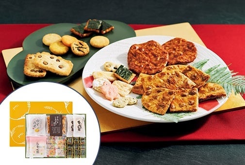 さがえ屋の自信作、高級感ある煎餅詰合せ