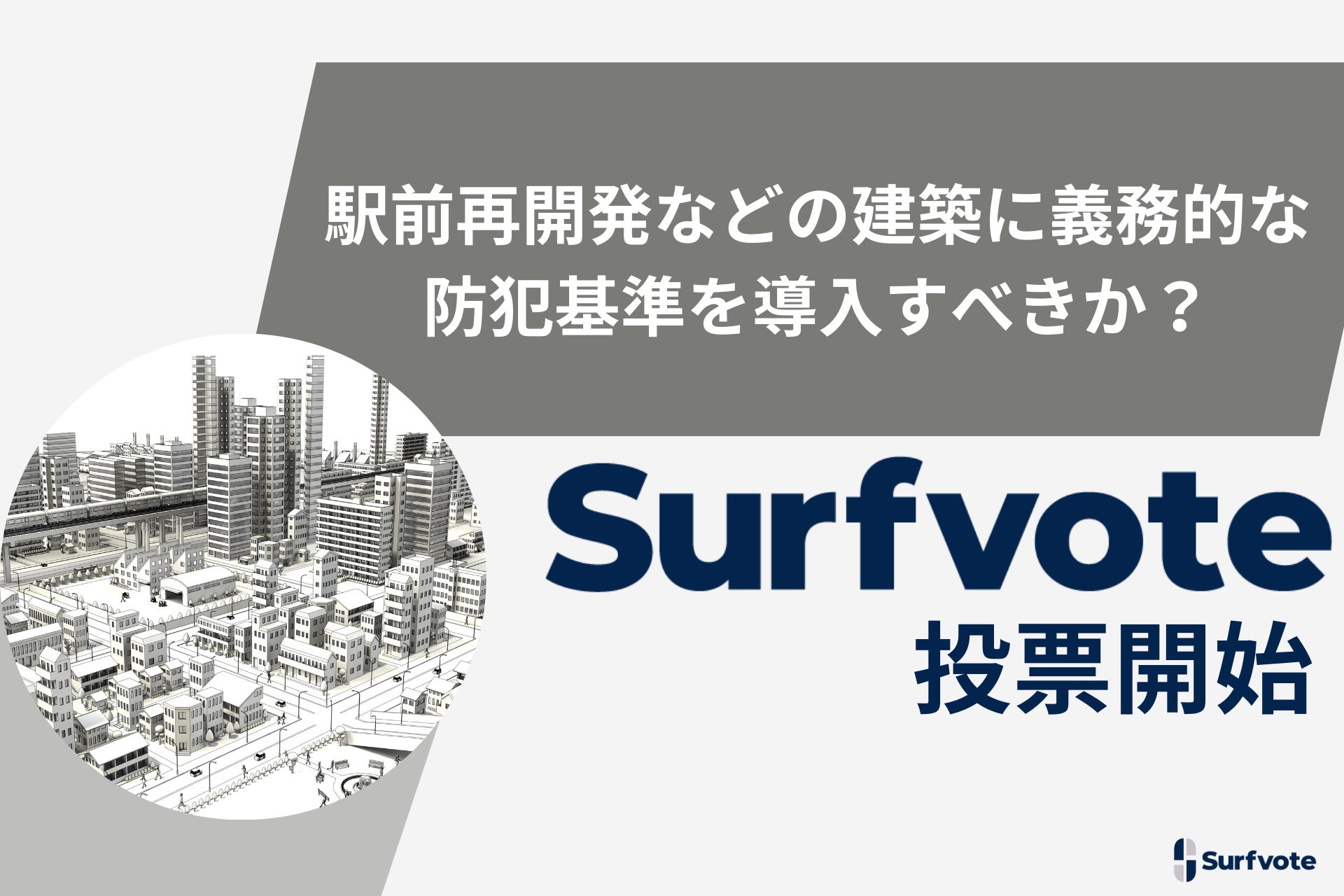 「駅前再開発などの建築に義務的な防犯基準を導入すべきか?」Surfvoteで投票開始