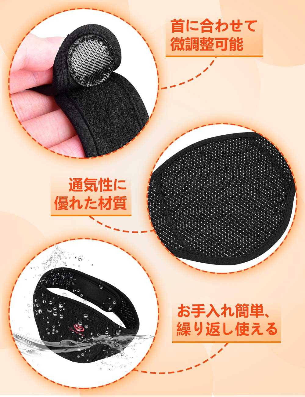 首の太さや形に合わせて微調整でき、快適にお使いいただけます。好みやコンディションによって締め具合が調整できますので、苦しくならない程度にフィットできます。