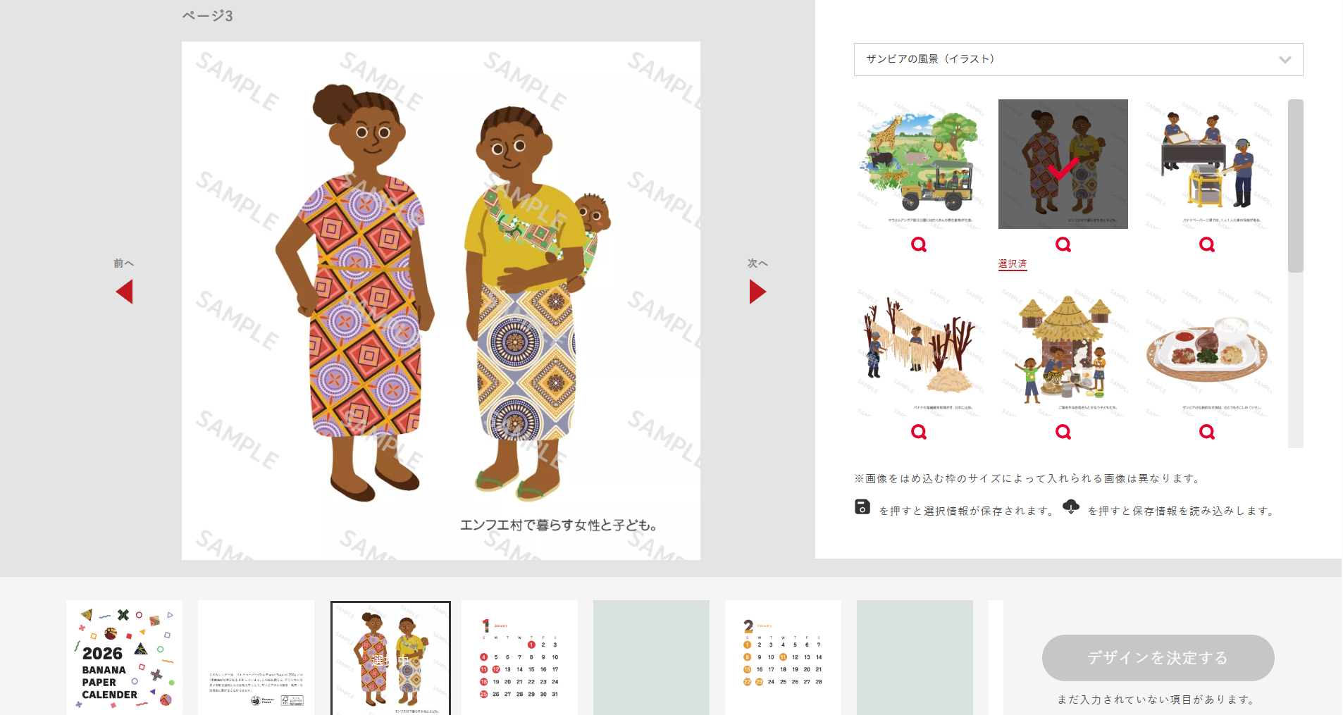 好きなデザインを12枚選んで作るバナナペーパーのオリジナルカレンダーです。