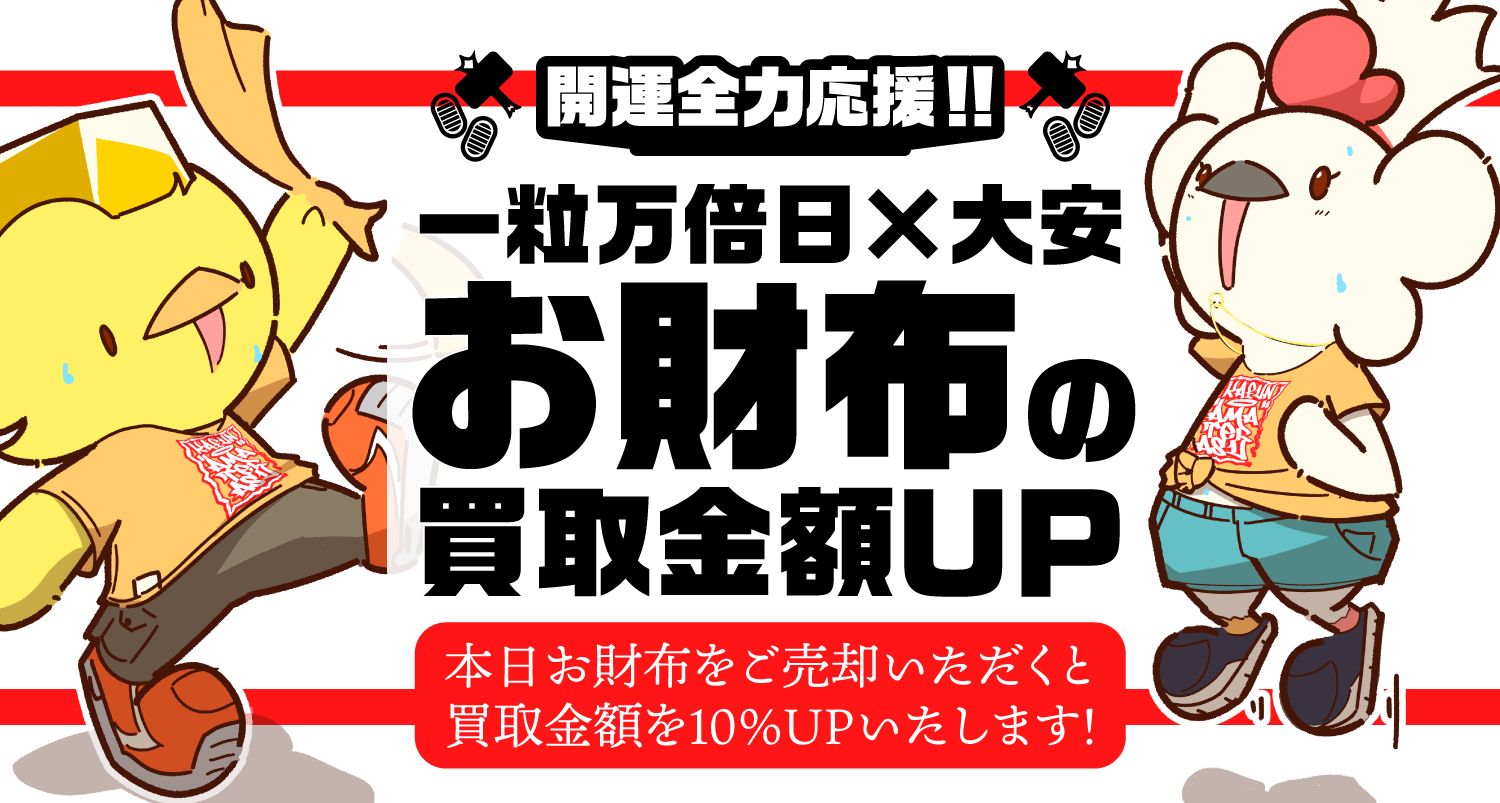 来週の7月29日は一粒万倍日、天赦日、大安日の3つが重なる大変運気に恵まれる日です。金運や仕事運などが高まることからお財布を買い替える方が多くいらっしゃいます。そこで今回は、7月29日の当日に限りお財布の買取金額10%UPキャンペーンを開催します。