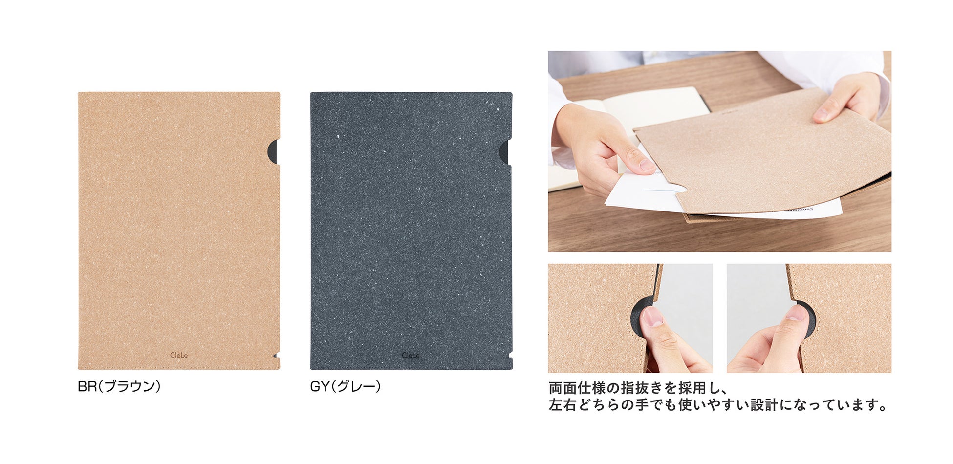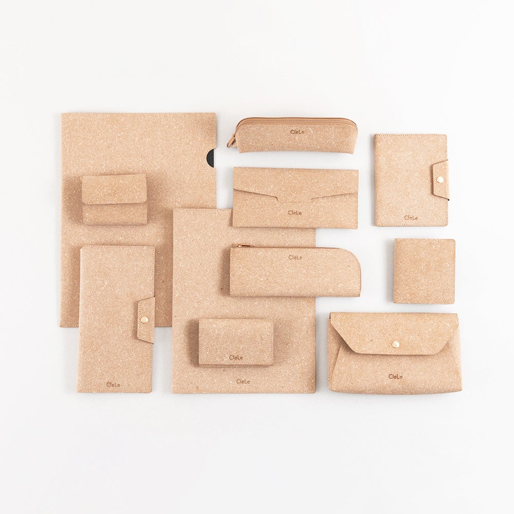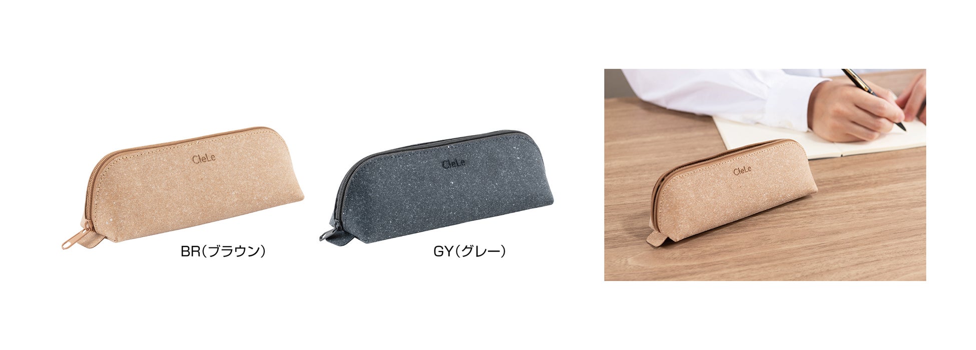 「CleLe(クルレ)」は、革製品を製造する際に出た革の余りや破片などをアップサイクルした皮革繊維再生複合材でつくられた環境にやさしい文具シリーズです。