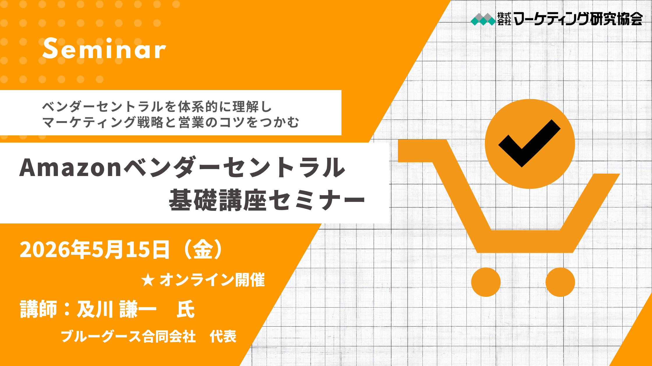 株式会社マーケティング研究協会は2026年5月15日、消費財メーカーのAmazon担当者向けに「Amazonベンダーセントラル基礎講座」を開催します。期間限定アーカイブ配信あり。