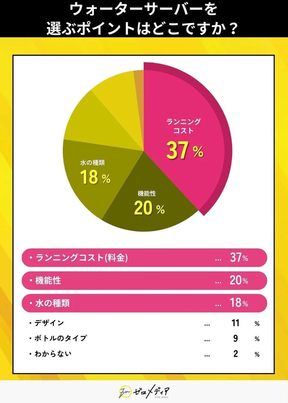 ウォーターサーバーを選ぶうえで重要視されているのは、ランニングコスト(料金)である。