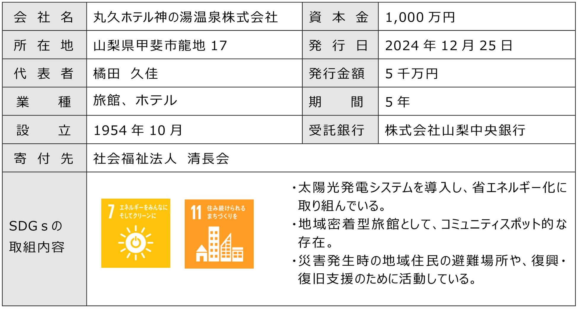 株式会社山梨中央銀行(頭取 古屋 賀章)は、寄付オプション付私募債「山梨中銀SDGs私募債」1件/5千万円を受託しました。