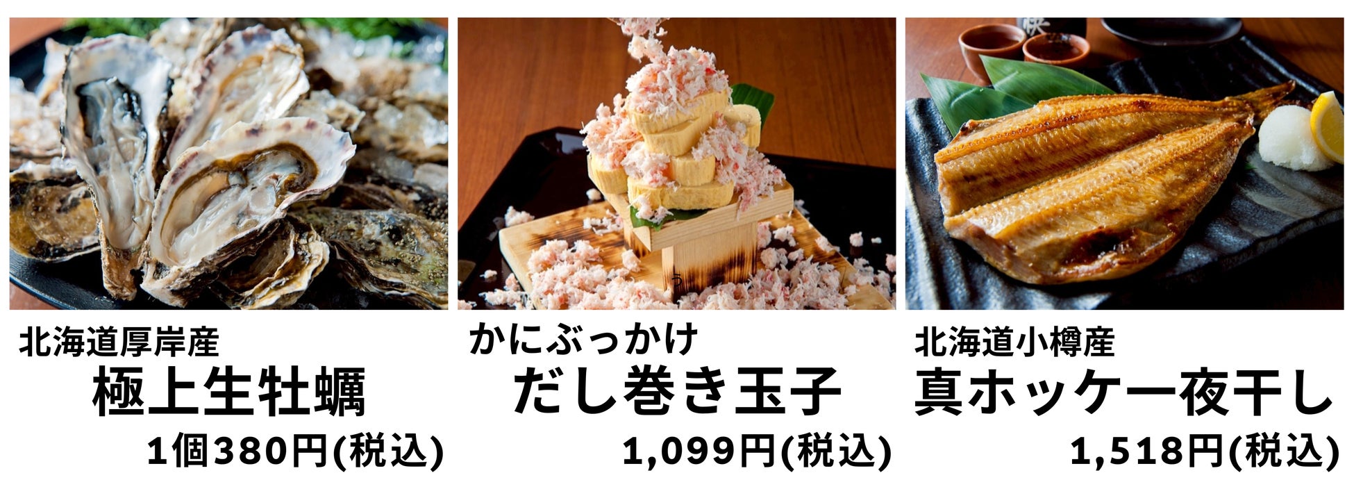 当店では、北海道から直送される旬の海鮮を使用した料理を豊富にご用意しています。なかでも人気のメニューはこちら。