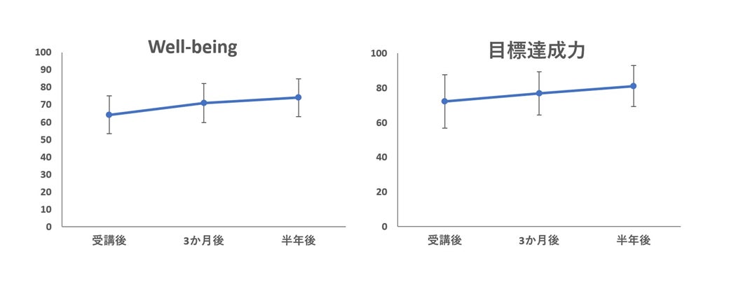 今回、筑波大学アスレチックデパートメントの協力により、【『頂点への道』講座アチーブメントテクノロジーコース】が「Well-being」の向上をはじめ、受講生の皆様に与える肯定的な変化を可視化するべく、2021年10月より半年間の継続調査を実施いたしました。以下は調査結果です。