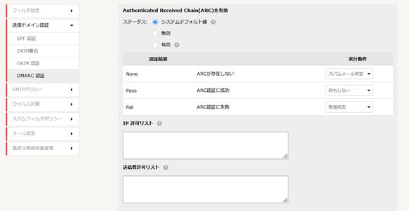DMARCのARC認証サポート(Authenticated Received Chain)はこれを補う仕組みで、メールが複数のメールサーバーを経由しても、そのメールが元々持っていた認証結果を保持・転送できます。これにより、正当なメールであることを示す認証情報が途中で失われてしまうことなく受信者に配達できます。